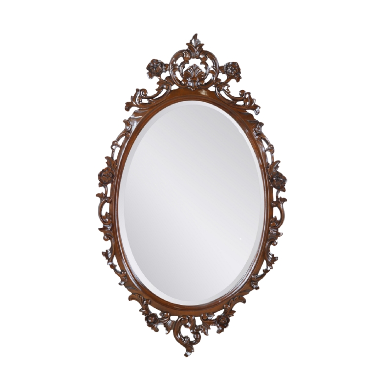 Настенное зеркало овальное, в резной деревянной раме.